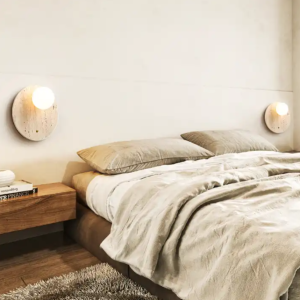 Đèn treo tường phong cách Wabi Sabi. Chất liệu đá Cream Cavity . Kích thước :ø300mm