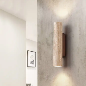 Đèn ốp tường phong cách Wabi Sabi. Chất liệu đá Cream Cavity . Kích thước :ø65*H320mm